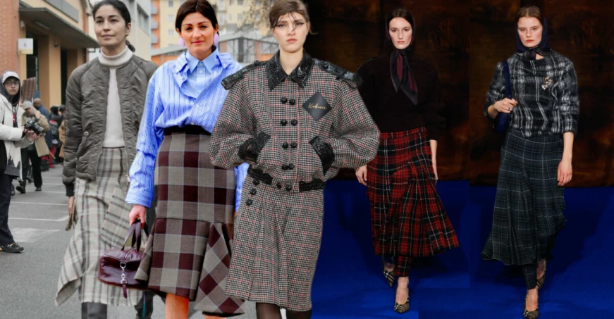 Den rutiga kjolen syns i många olika stilar och längder. Trenden lyfts som ett av vinterns starkaste modeinslag och återkommer i både klassiska och mer färgstarka kombinationer.
